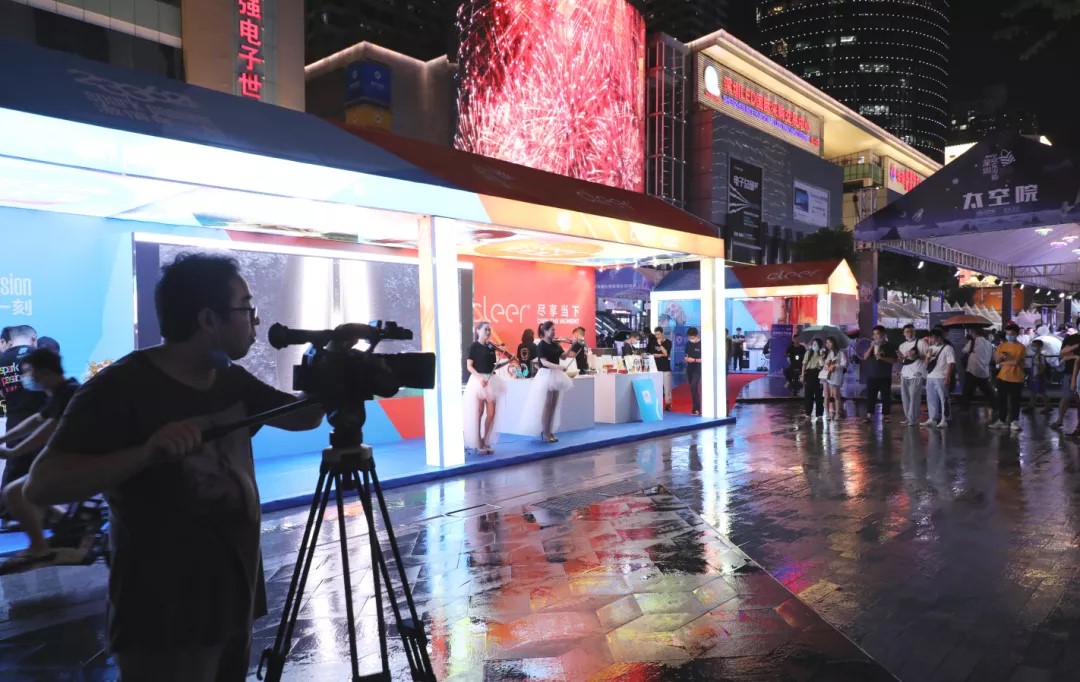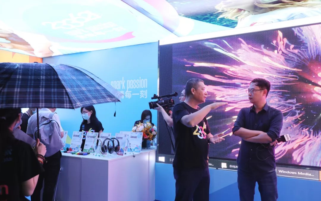 在賽格電子廣場(chǎng)的活動(dòng)現(xiàn)場(chǎng),斷斷續(xù)續(xù)的小雨并未影響參展商與游客高昂的積極性,為了讓冒雨前來逛展的游客覺得不枉此行,參展商們紛紛選擇以更高的熱情來進(jìn)行回饋,而在這其中,233621?品牌展區(qū)時(shí)尚炫彩的展區(qū)設(shè)計(jì)與精彩紛呈的節(jié)目設(shè)置,絕對(duì)稱得上今晚閃耀全場(chǎng)最靚的展區(qū)之一。中央電視臺(tái)特意來到展區(qū)進(jìn)行現(xiàn)場(chǎng)攝制,冠旭電子董事長(zhǎng)、233621?品牌創(chuàng)始人吳海全先生接受了央視記者的現(xiàn)場(chǎng)采訪。