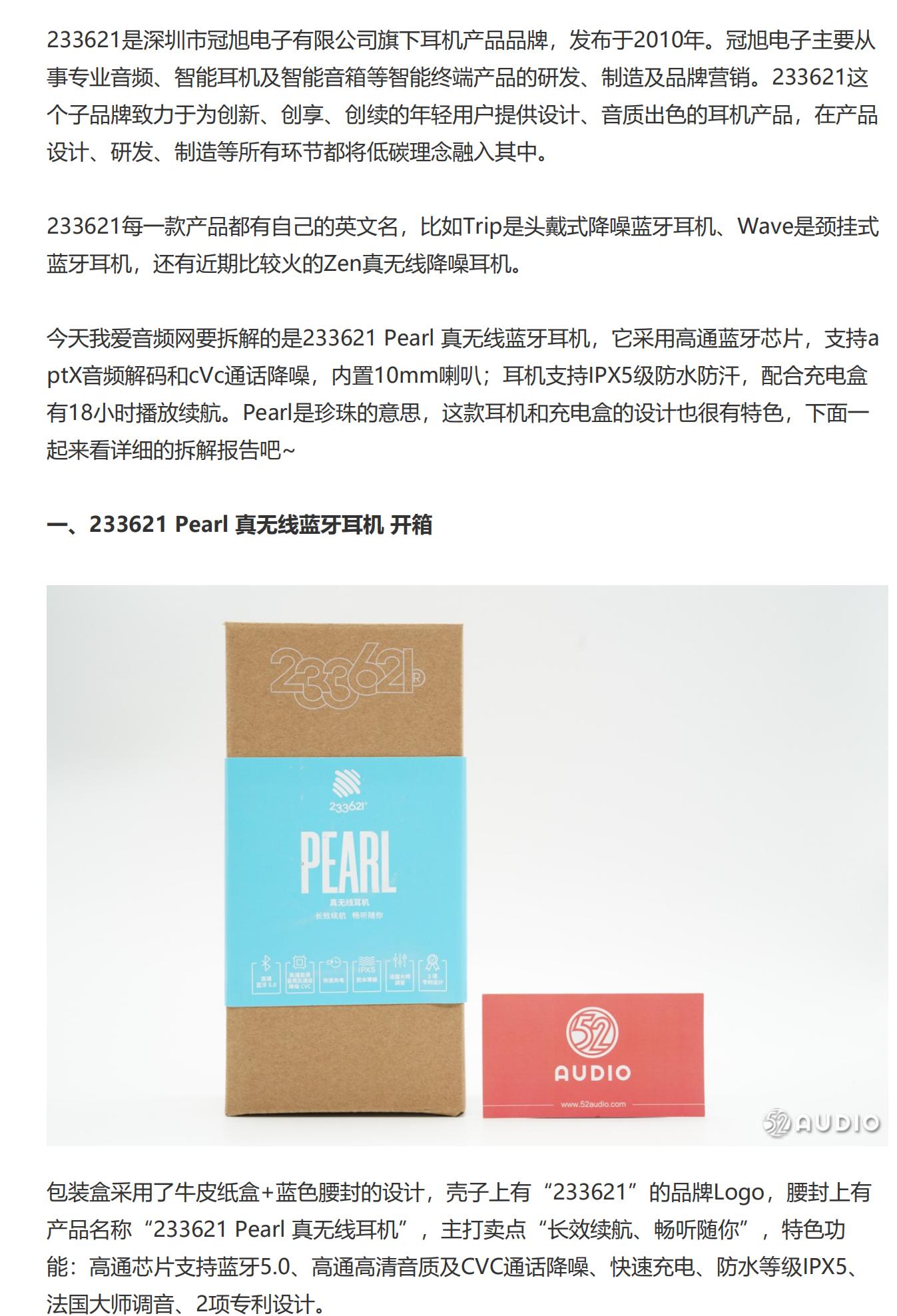 【轉(zhuǎn)載】我愛音頻網(wǎng)拆解報告:233621? Pearl 真無線藍牙耳機